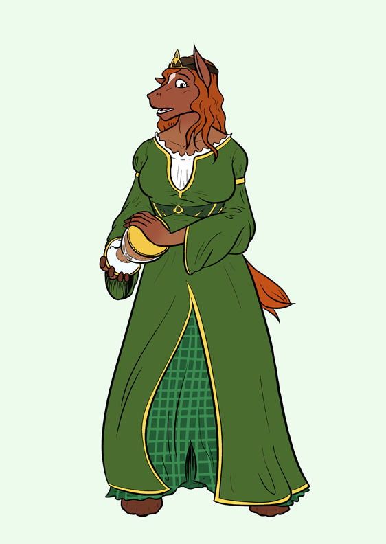 An Iron Artist commission for Xodiac where he changes into a beautiful mare after touching a magical hourglass. As the sands flow in reverse, s/he also finds herself transported to another time and place. (My IAs rarely had backgrounds in them so I'm afraid the time travel aspect is up to your imagination.)